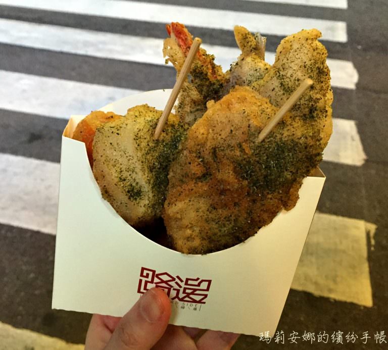 整體而言,我覺得路邊炸蝦天婦羅的炸工十分了得,跟日本料理店的天婦羅料理不分軒輊喔!薄薄一層的炸物麵衣,鹹鹹甜甜很酥脆,還加了海苔粉提味,非常有自身的特色,且幾乎只有一般天婦羅的二分之一價格,好超值啊!