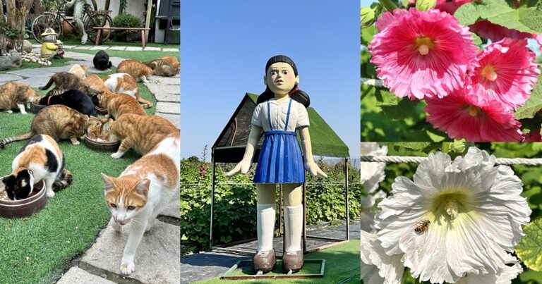 田中窯蜀葵花季|浪漫蜀葵花海 魷魚遊戲台版木頭人 萌貓陪你賞花玩陶 彰化景點 親子旅遊推薦