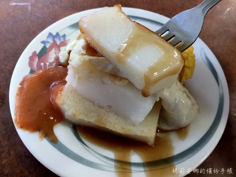 幾乎每位客人面前都有的招牌餐點:菜頭粿、米腸跟荷包蛋。