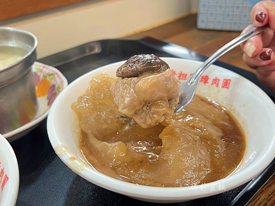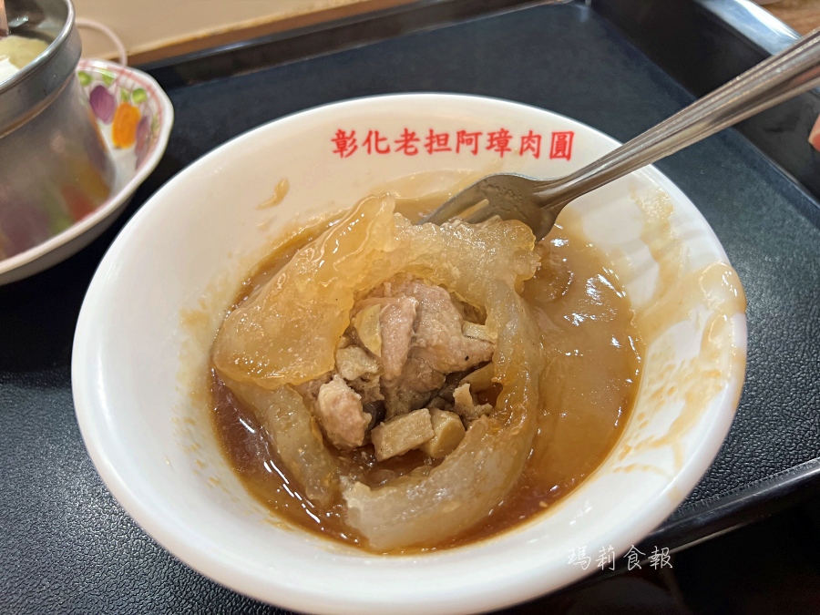 排隊時看到好多人點龍骨髓湯,我們也跟著點了。第一次喝龍骨髓湯有點緊張,不過白白嫩嫩的骨髓入口即化,口感滑順帶點膠質感,意外地好吃;湯頭清爽但層次蠻豐富的,喝起來好溫潤順口。搭配肉圓一起吃,完全就是經典的彰化味。