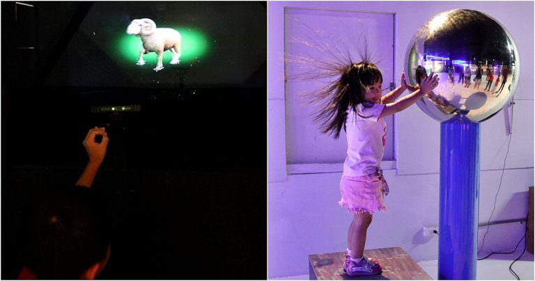 在感應器前用手指頭就能選擇、控制,浮空投影裡的動物們。