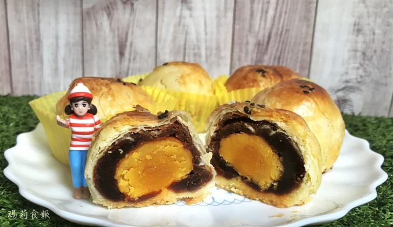 從切面可看到鹹蛋黃好大呀!原本以為蛋黃這麼大,吃起來會很鹹,結果不會;且相較下紅豆泥的份量比一般的蛋黃酥還少,所以甜度也低了些,整個蛋黃酥吃起來鹹甜度一整個恰到好處,蛋黃口感濕潤、外皮及底層都好酥,口感很多層次,吃起來好過癮,難怪這麼廣受歡迎。