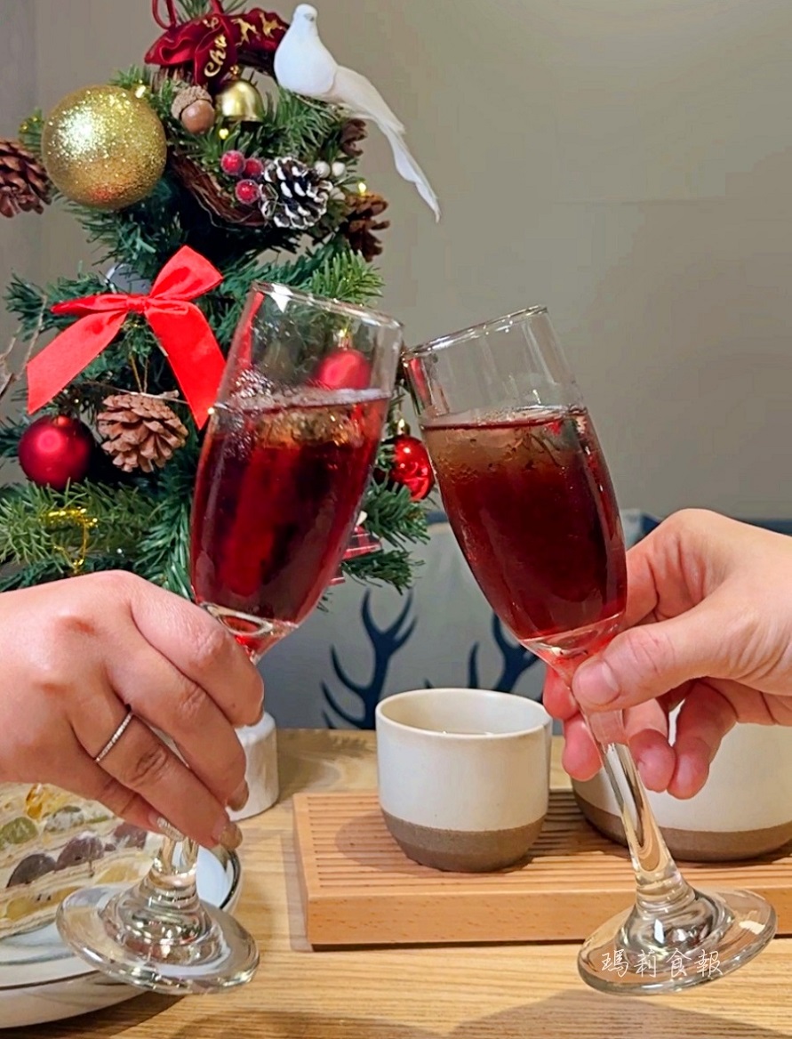 專為聖誕聚餐設計的「香料水果紅酒」,是以自調比例的熱紅酒香料與紅酒慢煮融合而成。特別的是,它加入清爽的氣泡水與可樂,取代了傳統熱紅酒常有的厚重感,我超愛這種清爽感!