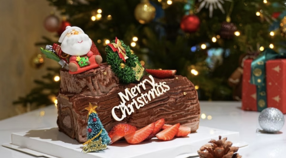 聖誕柴薪蛋糕,是香緹果子冬季的儀式感擔當!可可雪紡蛋糕捲濕潤輕柔,內餡捲入店家自製烘烤榛果醬與酥脆焦糖核桃,每一口都能嚐到堅果香脆與榛果醬的滑順,與濃郁的巧克力香,還點綴了新鮮草莓、聖誕老人糖偶及節慶裝飾(裝飾不可食用),帶來專屬冬日的頂級幸福感!