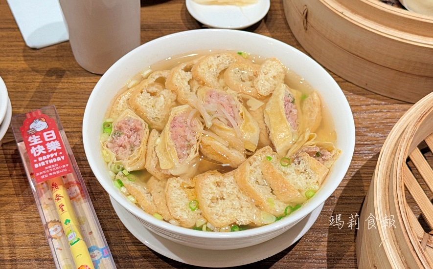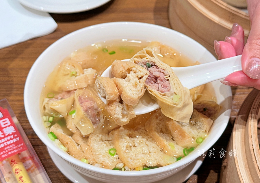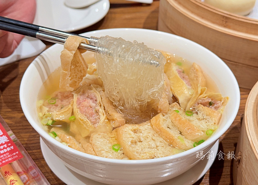 油豆腐細粉一上桌就香氣撲鼻,吸飽湯汁的油豆腐搭配滑順細粉和鮮肉腐竹捲,吃起來溫潤又滿足,湯頭帶著榨菜的鹹香,清爽順口好好喝。