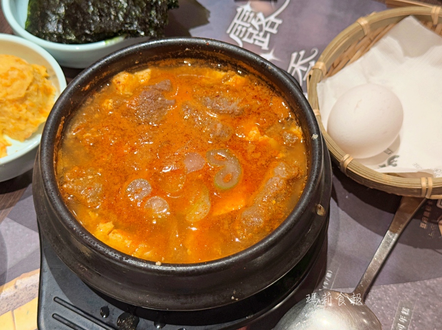 熱騰騰、香噴噴的豆腐煲,剛上桌時看起來不太起眼XD,還會附一顆新鮮雞蛋,可以打到湯裡,增加風味。