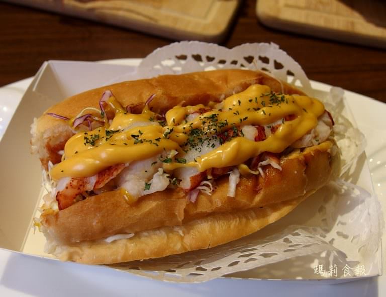 酥軟的LoRo麵包裡夾著厚厚一層大塊且Q彈鮮甜的龍蝦肉、鮮脆的高麗菜絲與香噴噴的歐姆蛋,口感好豐富,每一口都吃得到龍蝦肉的感覺好幸福吶~真不愧是主打商品,而且龍蝦肉份量這麼多,竟然只要295元,這價位太超值了啦!