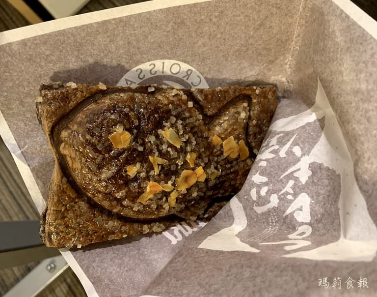 從斷面圖能看到,一層層的很像酥到極致的丹麥麵包,內餡的北海道白巧克力醬很少,但也幫味道及口感增添了不少層次的豐富度。