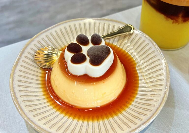 超級可愛的貓掌印布丁,上頭的黑色掌印是咖啡凍,底下的貓掌是原味生乳酪,搭著滑順綿密的布丁一大口吃下,甜香的焦糖味裡併發出濃縮咖啡的微苦韻與濃郁蛋香,香氣跟口感層次都超讚,好拍好吃且不會甜膩~