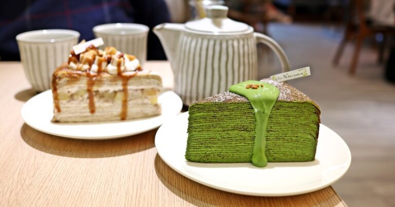 使用京都丸久小山園抹茶製作的抹茶千層,餅皮與餡料都是迷人的抹茶綠,相當吸睛。