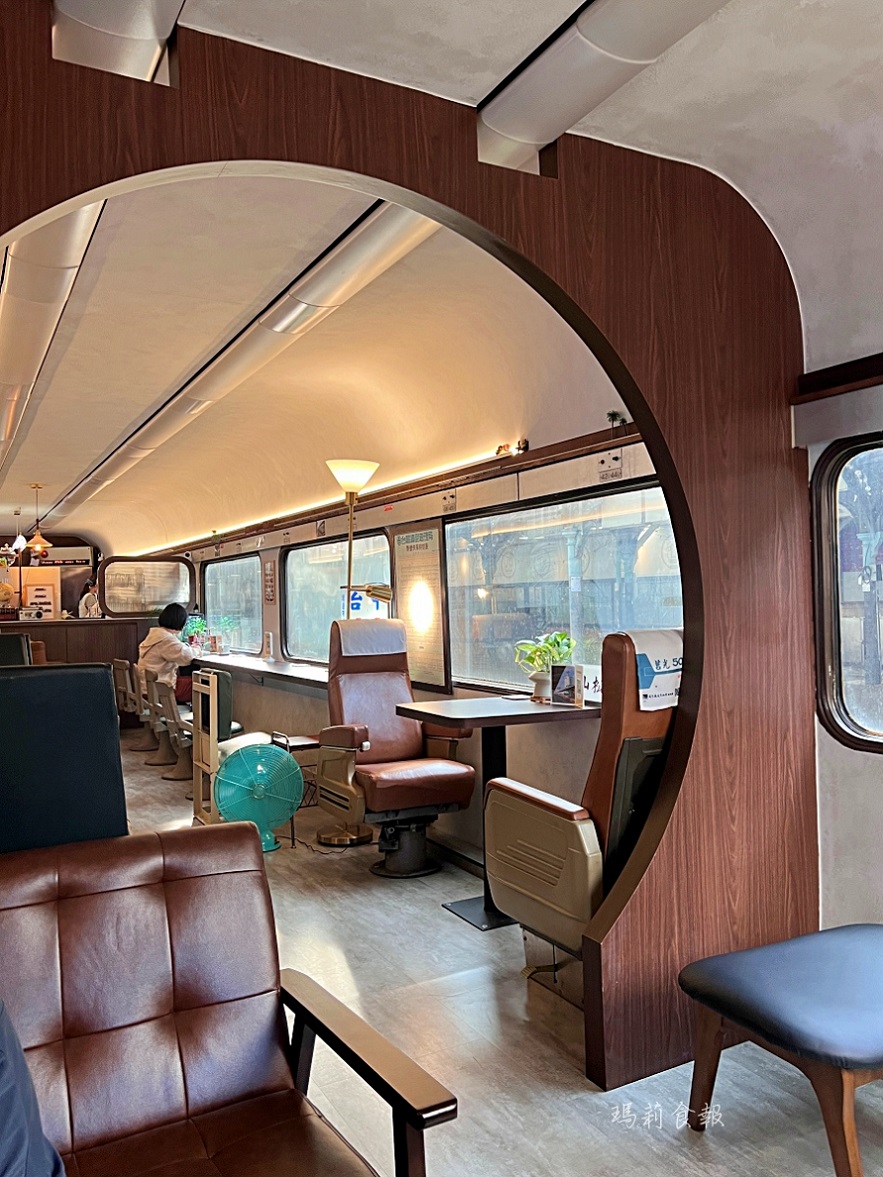 走進咖啡車廂,裡面保留了滿滿復古元素:老式座椅、牆上的時刻表、模型小火車,每一個細節都讓人感受到濃濃懷舊味。