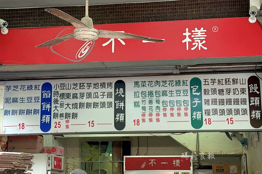 各式包子、饅頭、燒餅等價位落在 15~25 元之間,超親民的銅板價。不一樣饅頭僅供外帶,沒有內用,每天新鮮現做,賣完就收攤,周日、一公休。(菜單品項與價格,請以現場公告為準)