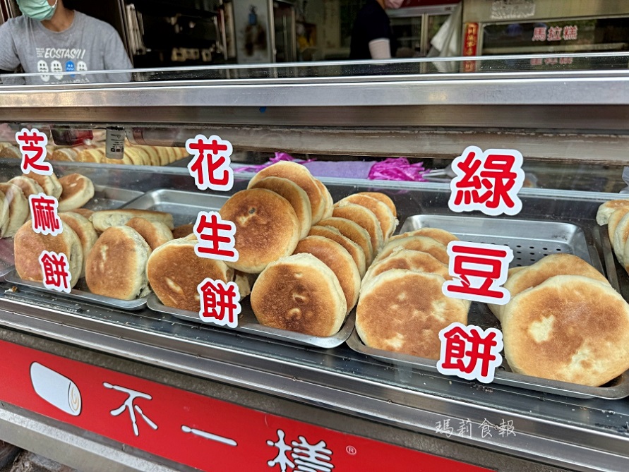 櫥窗裡整齊擺放著各式點心,包括烤饅頭、槓子頭、地瓜餅、芋頭餅、胚芽餅與芝麻燒餅,每一樣都是限量現做。如果看到櫥窗空了,可能是正在等下一爐出爐,或者當日已經售罄,想吃的朋友建議一定要早點來排隊。