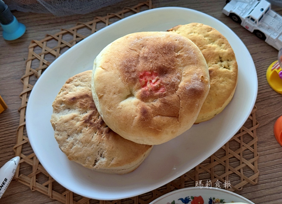 外皮烘烤到微焦香、內裡棉軟帶手工嚼勁,外酥內軟的口感,讓我們越吃越喜歡。