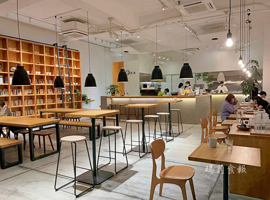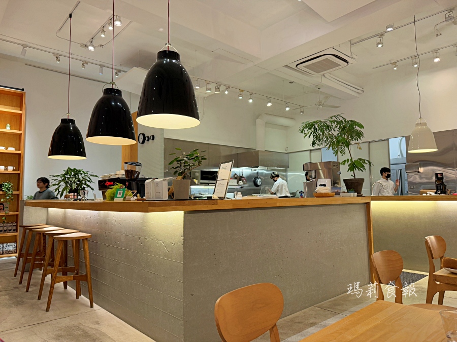 環境好寬敞,簡單俐落的木質桌椅、吧台座位,還有超大黑燈罩的燈飾,加上輕柔的音樂,環境氛圍很靜懿,也難怪好多人在看書或工作。