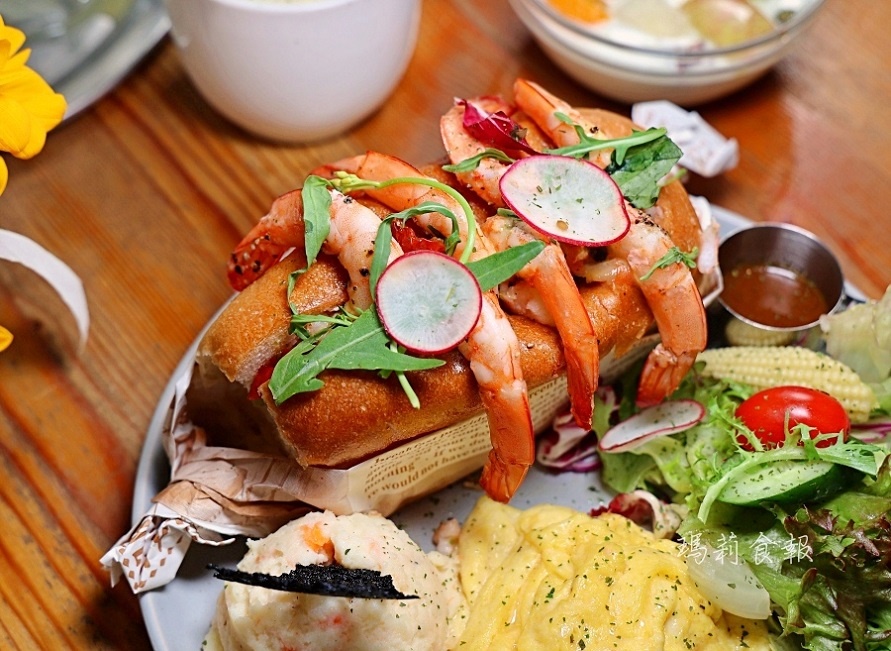 一大口咬下去,麵包的柔軟、蝦子的鮮美與烤香,再加上百香果的酸甜果香,在嘴裡層層交織,清爽又輕盈,有夠好吃,真讓我越吃越開胃呢!