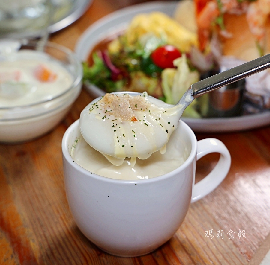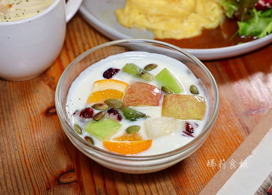 再加上奶香濃郁的蕈菇奶油濃湯,和使用新鮮水果、南瓜籽、蔓越莓果乾等豐富配料的水果優格,繽紛、豐盛又營養滿分的早午餐!
