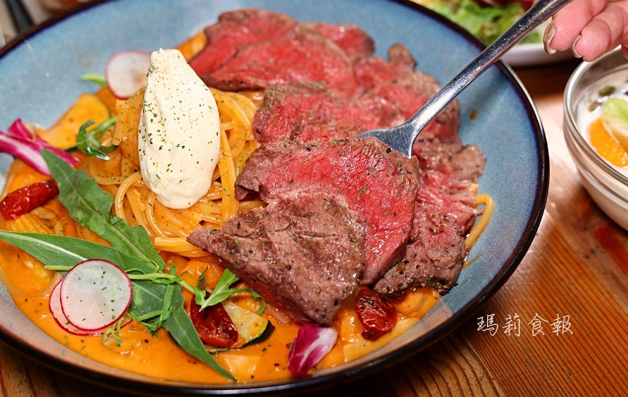 這道義大利麵一上桌就讓我們驚呼 「太豪氣啦!」6oz的澎湃肉量,肉控完全沒有抵抗力!