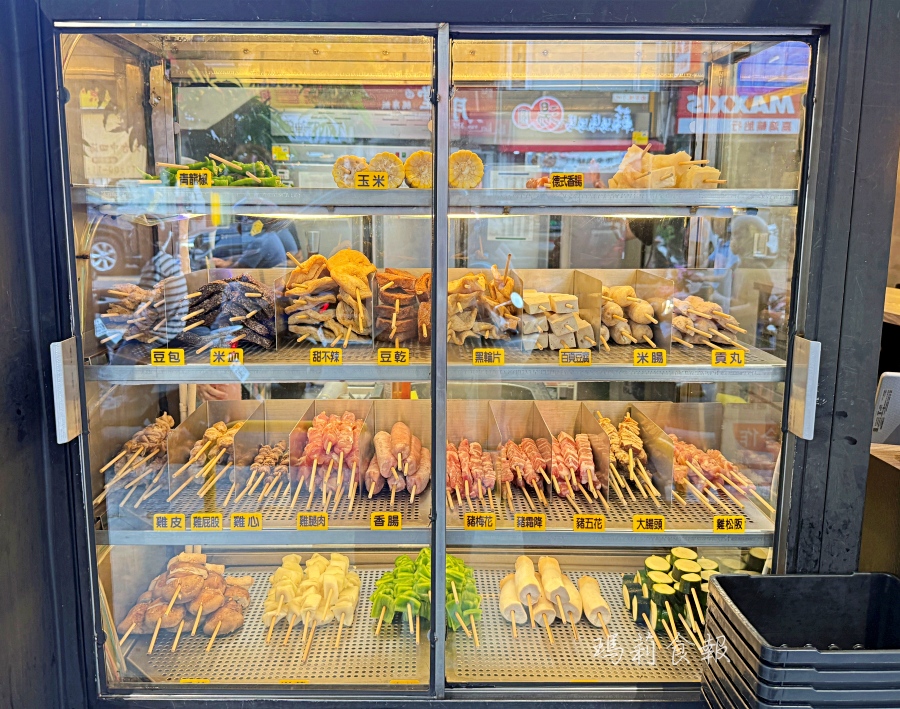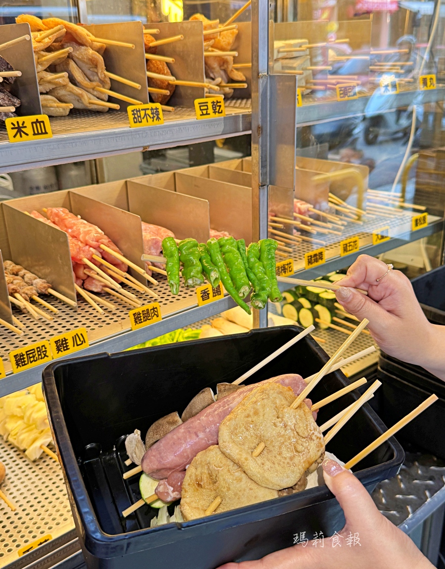 各式新鮮串燒整齊地陳列在冰箱櫃中,想吃什麼自己從玻璃櫃自助拿取,上面都有標示品名,沒看到的海鮮或其他想吃的食材請直接點餐,選好後到櫃檯結帳,現點現烤,保證每一串都熱騰騰、香噴噴。