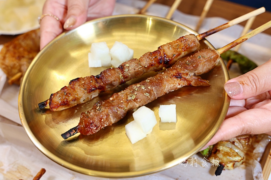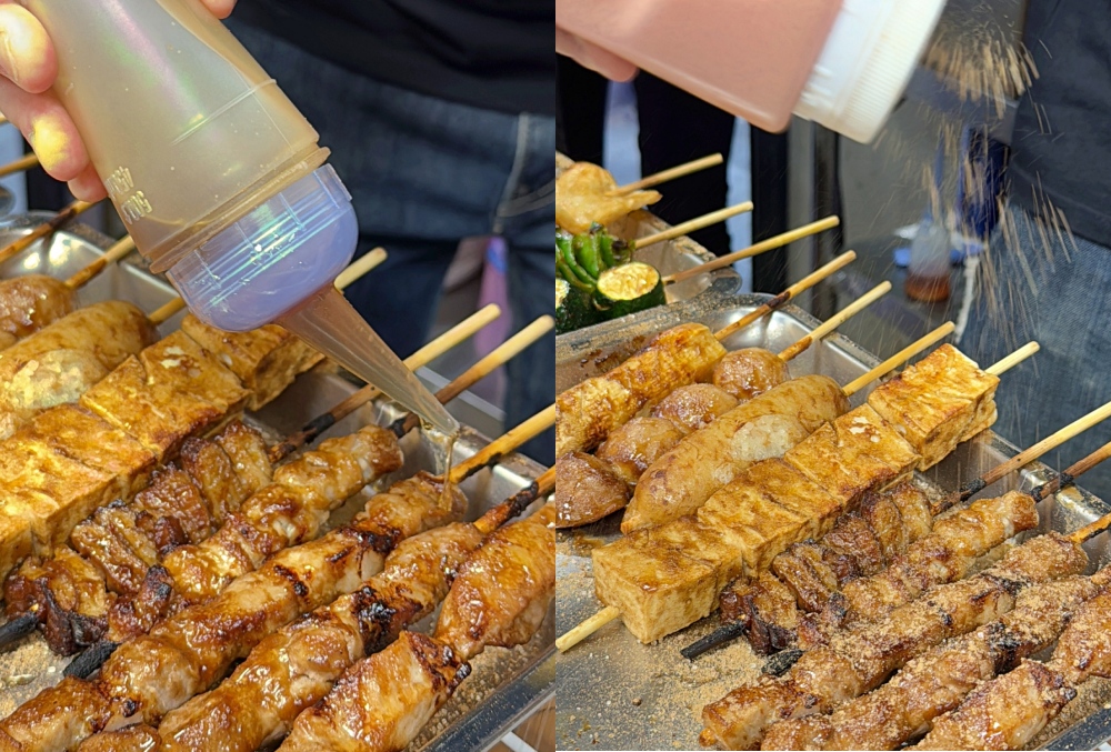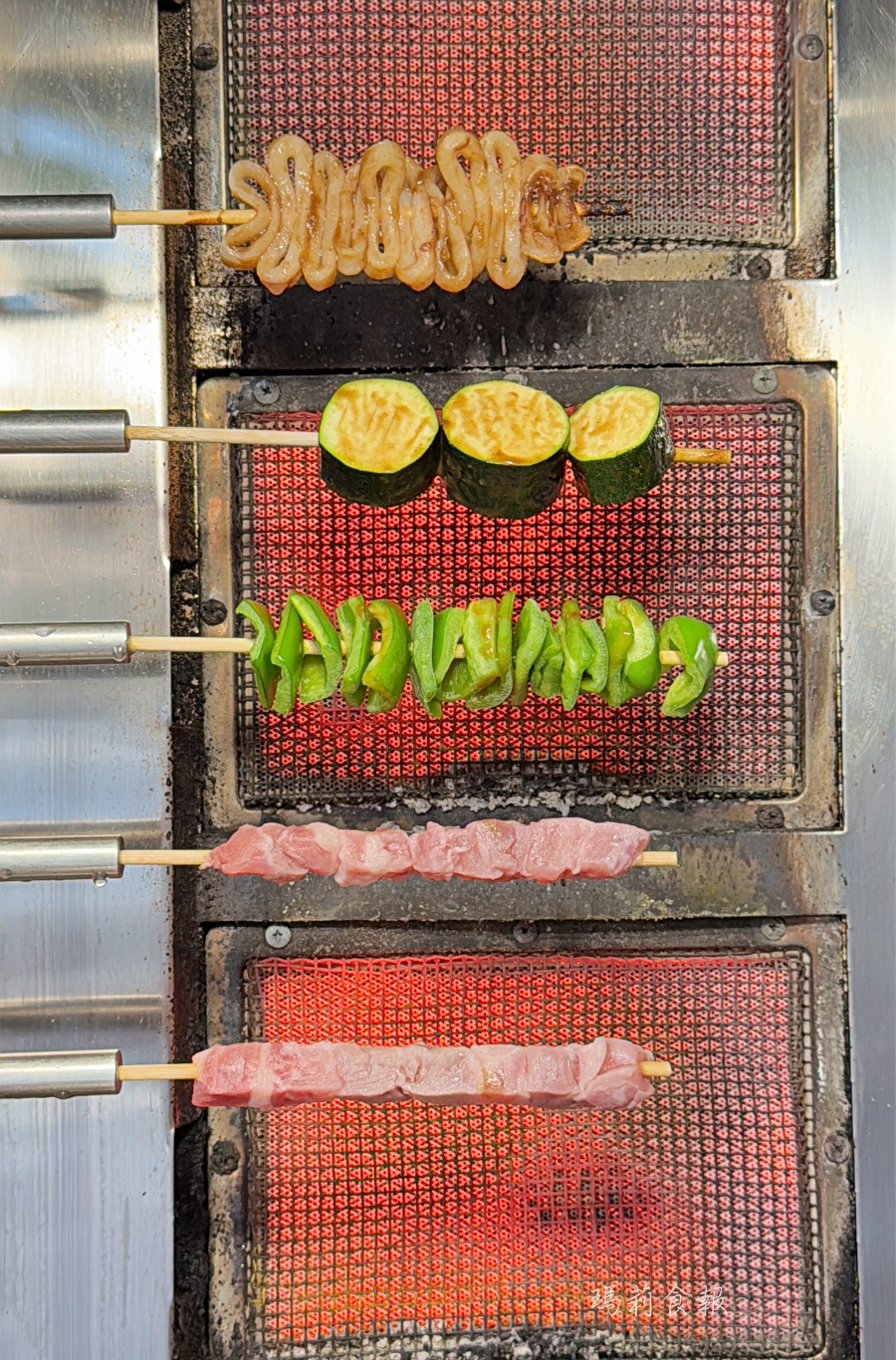 所有串燒食材都是新鮮原味、未經醃製或油炸,會先刷上用本土百花蜜,搭配新鮮鳳梨、蘋果、洋蔥等蔬果熬製的獨門燒烤醬,再送入直立式烤爐炙烤,烤爐的溫度均勻,燒烤速度很快。