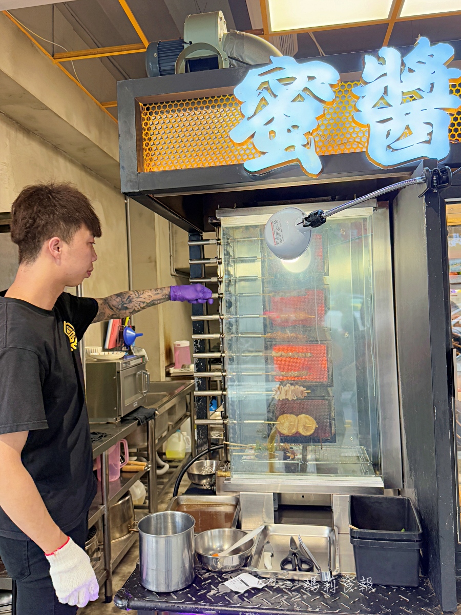 燒烤過程中會反覆刷醬,讓食材更入味,烤熟出爐後再淋上純正百花蜜、灑上特調辛香料,醬香層層堆疊,食材原味與醬味完美交融。