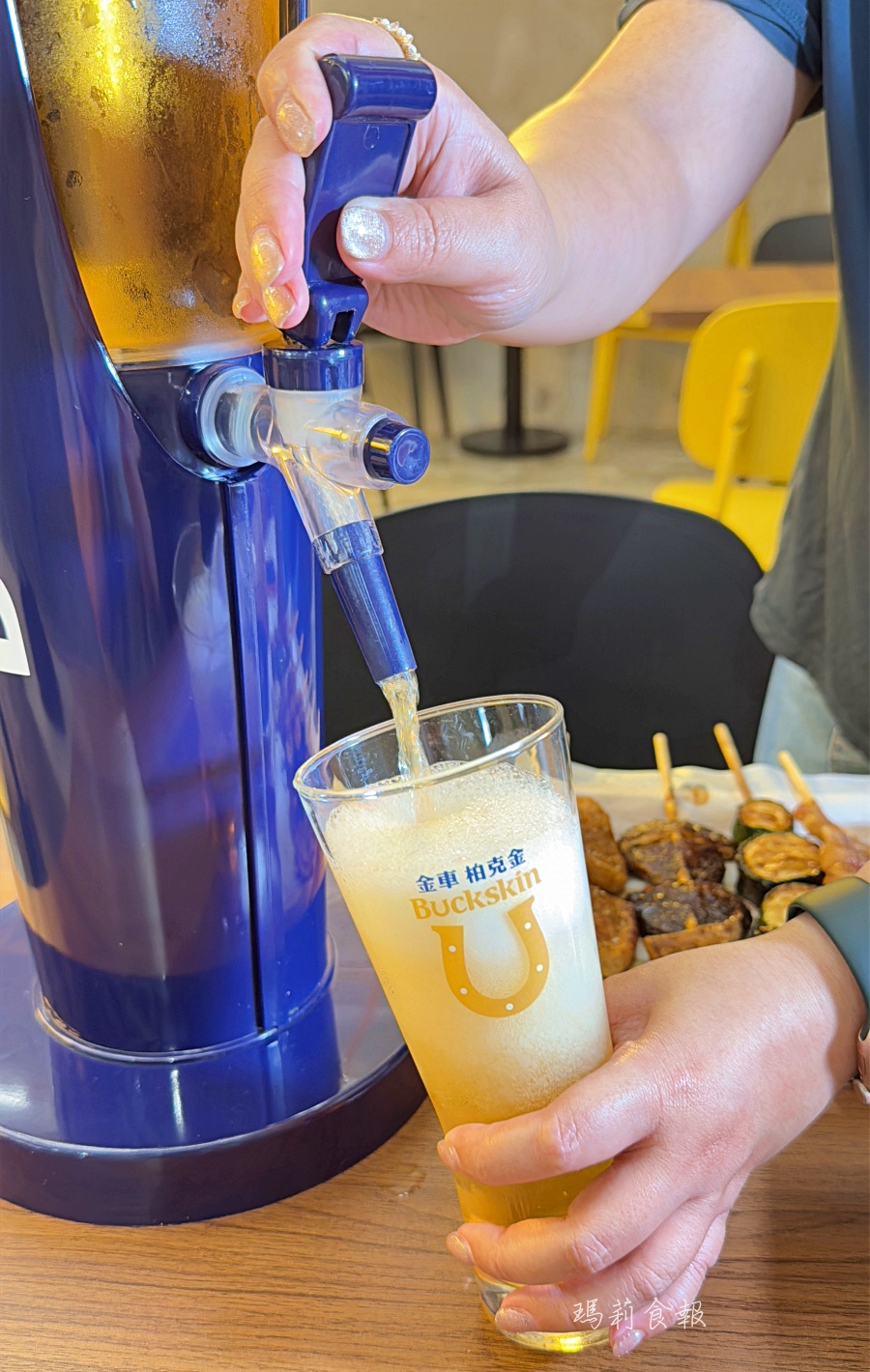 黃金拉格的氣泡綿密、清爽順口,配上串燒,爽度超級高!(未成年請勿飲酒,開車不喝酒、喝酒不開車)