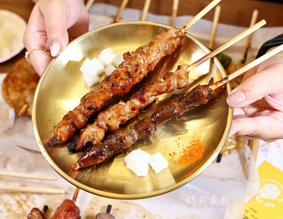 台中串燒推薦|蜜醬燒烤,全台獨家百花蜜串燒30元起,飲料無限暢飲,生啤+1元再一杯