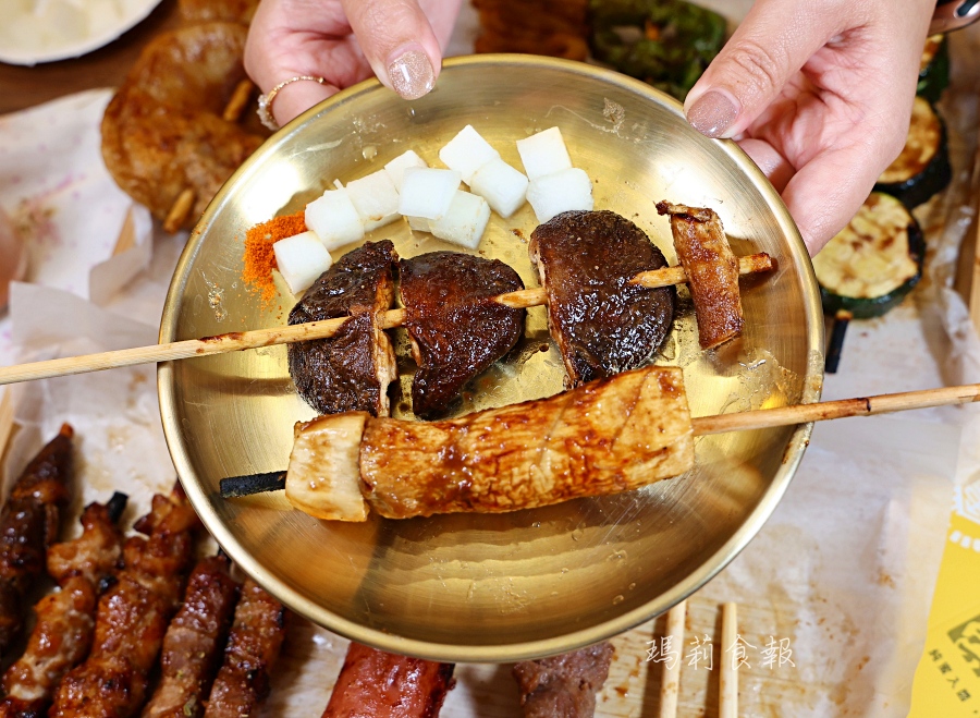 杏鮑菇厚實Q彈,咬起來超滿足;香菇則是咬下就爆汁,鹹甜醬汁更襯出香菇烤後的清甜滋味,真讓我吮指回味呢。