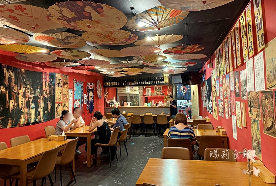 店內一眼望去充滿日式元素,櫻花樹、紙傘與復古廣告牆讓人像走進日本的巷弄小店裡。