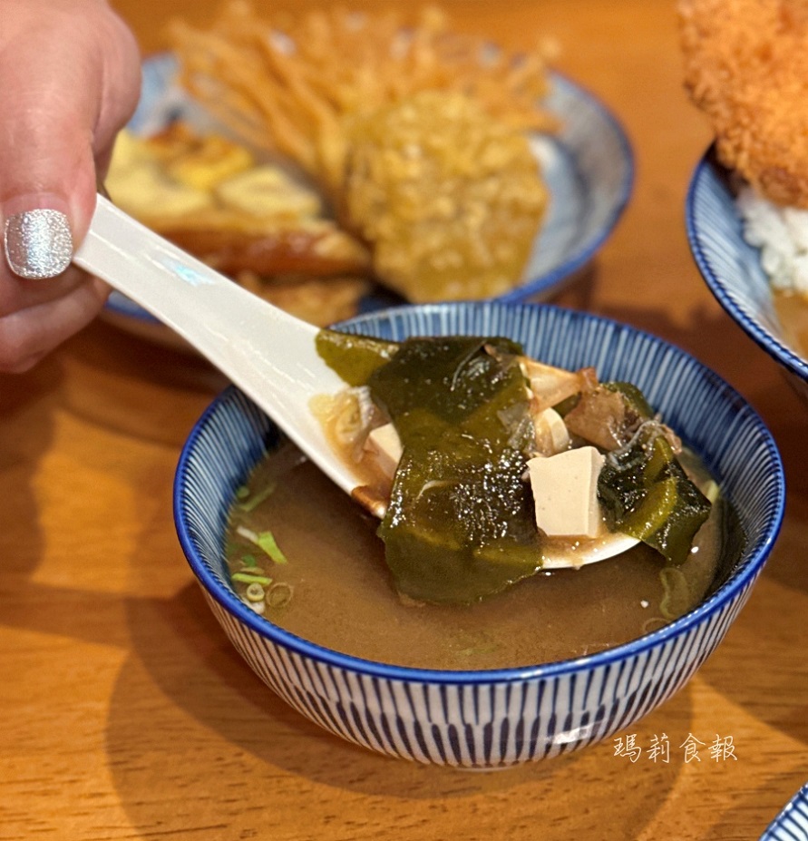 白飯上的炸豬排好大一塊,咖哩醬好香濃,還附炸蔬菜與味噌湯,套餐份量非常實在。