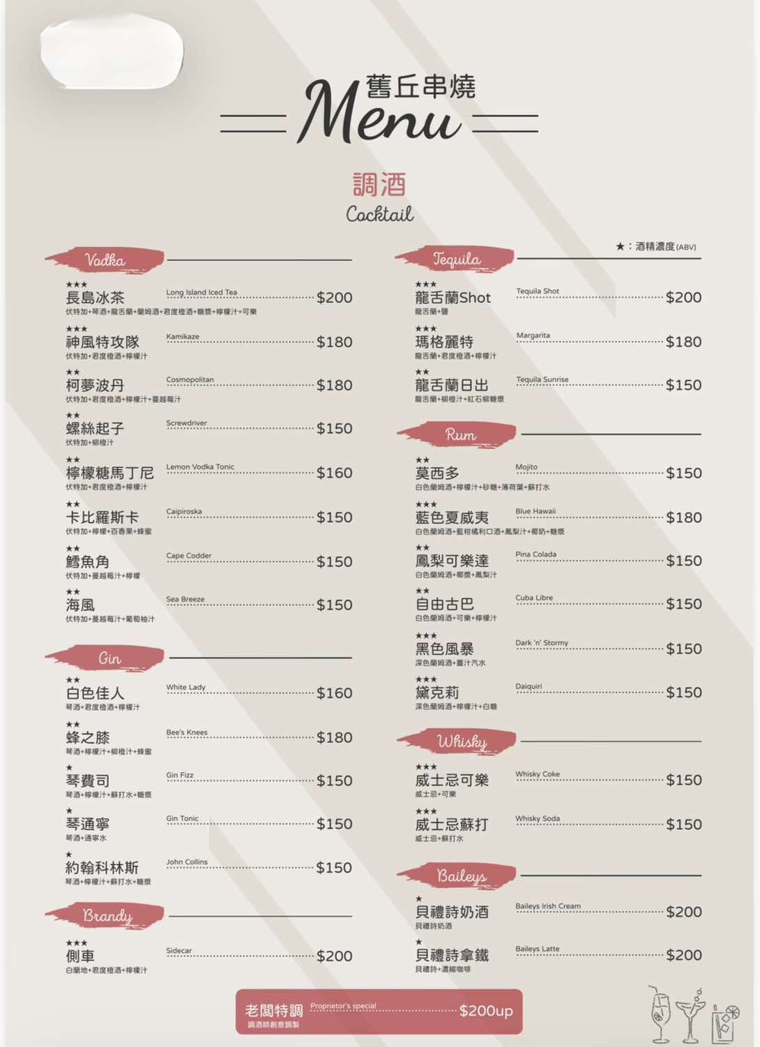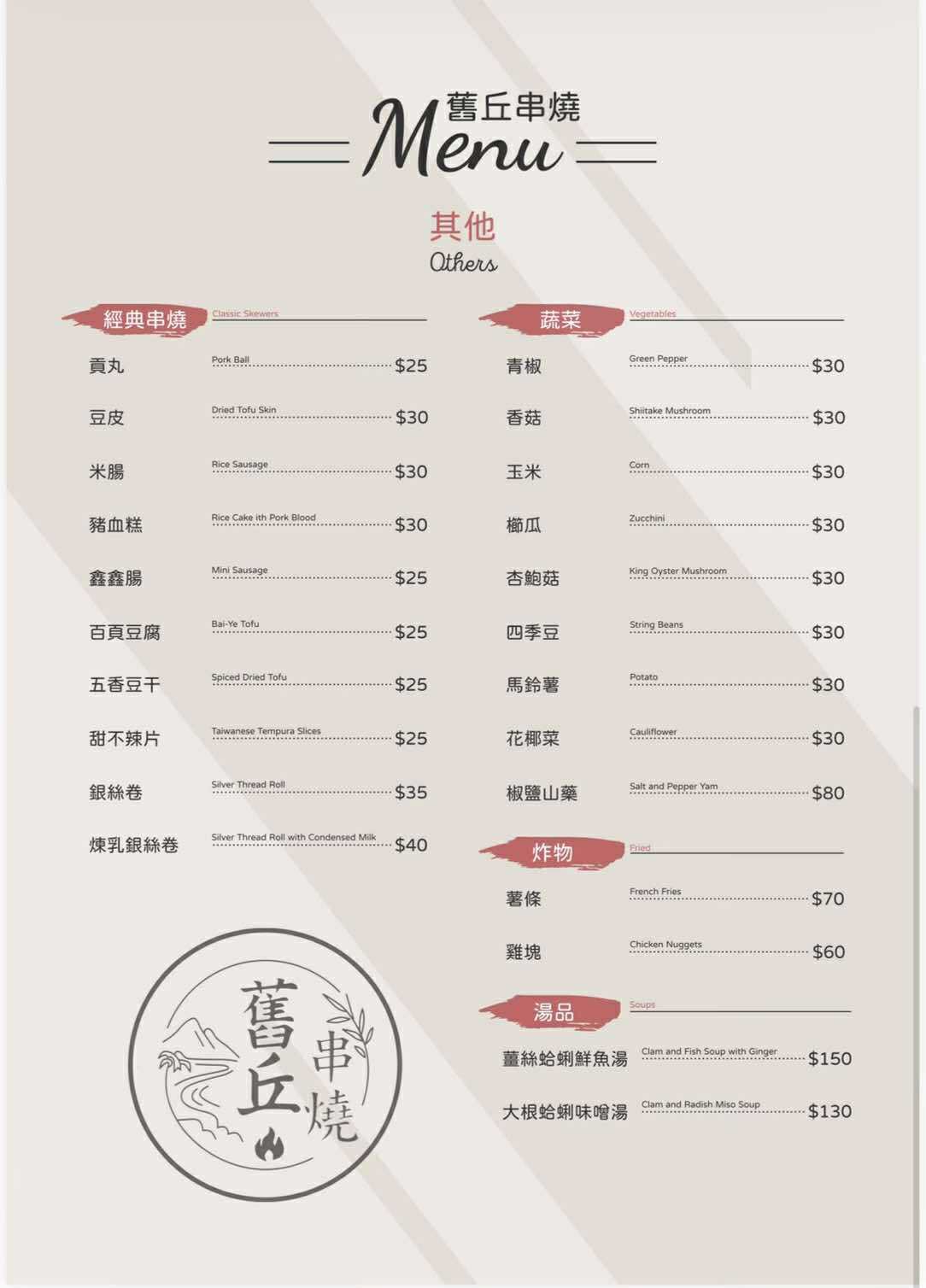 推薦給想找串烤品項多、氛圍舒服的晚餐或宵夜選擇的朋友,來舊丘串燒東海店試試吧!