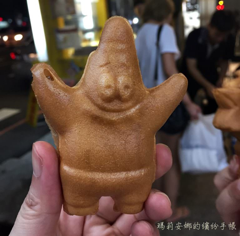 吃完忠義素食,打著飽嗝漫步回家的路上,走不到五步看到這家圍了好多人的雞蛋糕店~(↑連派大星也投降)