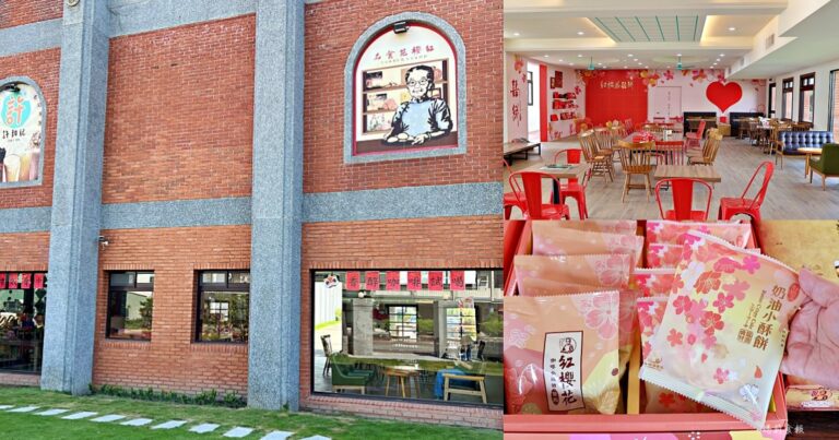 紅櫻花食品總店|台中大甲必訪的首創大甲奶油小酥餅店 台灣伴手禮推薦 備停車場與寬敞休息區