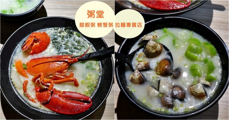 以現撈現煮的活體波士頓龍蝦粥、螃蟹粥聞名的粥堂(龍蝦粥 螃蟹粥 拉麵)專賣店,有:鮮蝦、絲瓜蛤蠣、蟹管等海鮮粥品、香菇肉粥,及日式拉麵烏龍麵、鍋燒麵、麻油麵線等,用料實在、溫潤鮮美的滋味實在好驚艷,吃完會上癮耶!不但好吃CP值也很高,不管妳是喜歡海鮮或是粥都推薦一定要吃這家。(無服務費,可Uber Eats送餐)