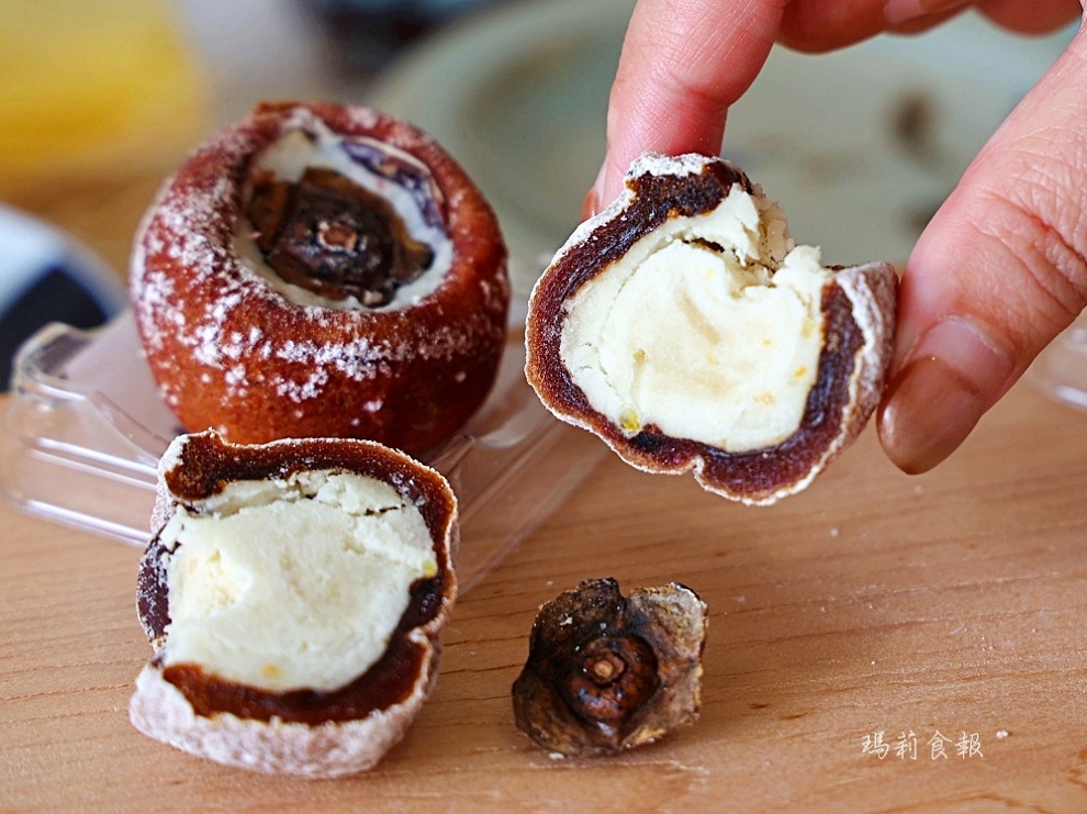 選用新竹在地柿餅,填入自調柑橘餡,時而還能吃到柿子的軟Q果肉,帶出柑橘餡的酸甜香氣。這柿菓餅對我這個客家人來說,熟悉的老味道與日式巧思融合,感到格外親切又驚喜。