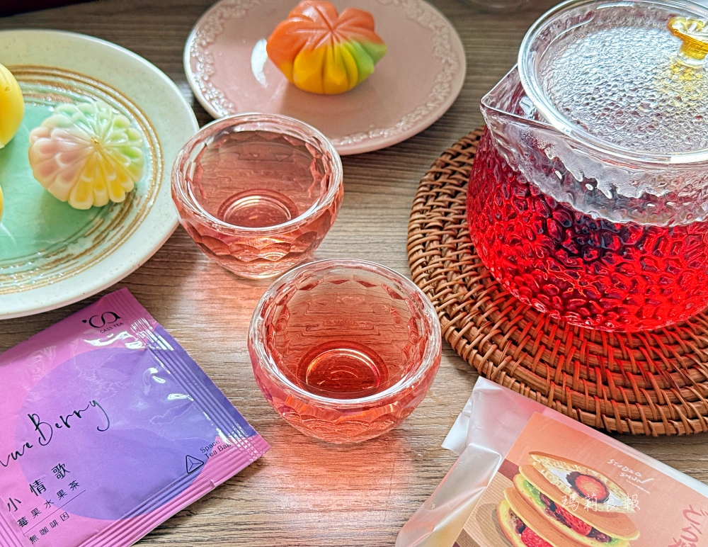 每款茶都嚴選天然花草與水果,清爽順口又帶著細緻香氣,喝起來很舒服。搭配和果子一起享用,果香在口中慢慢綻放,更襯出和菓子的甜味層次,非常加分。