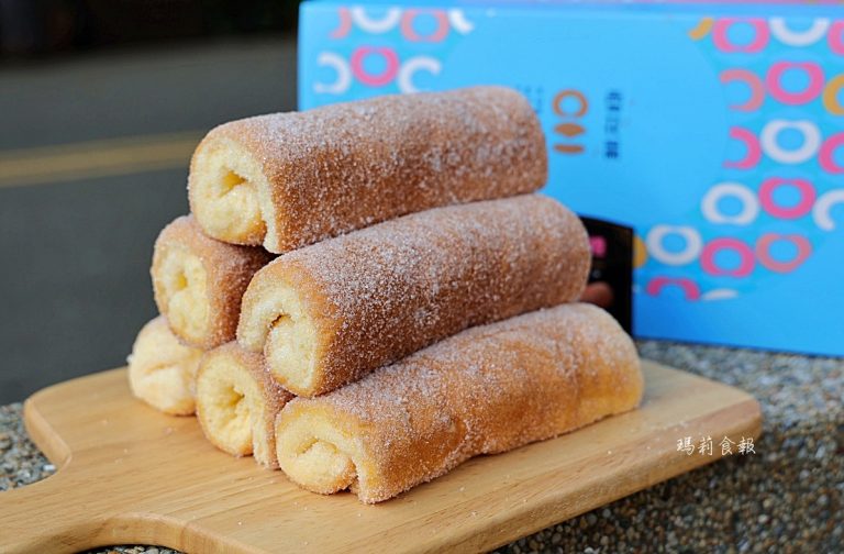 朋友每次來豐原,不管順不順路都要專程來選購的砂糖蛋糕捲,粉紅提袋與淺藍紙盒的搭配,拿來送禮也很不錯。