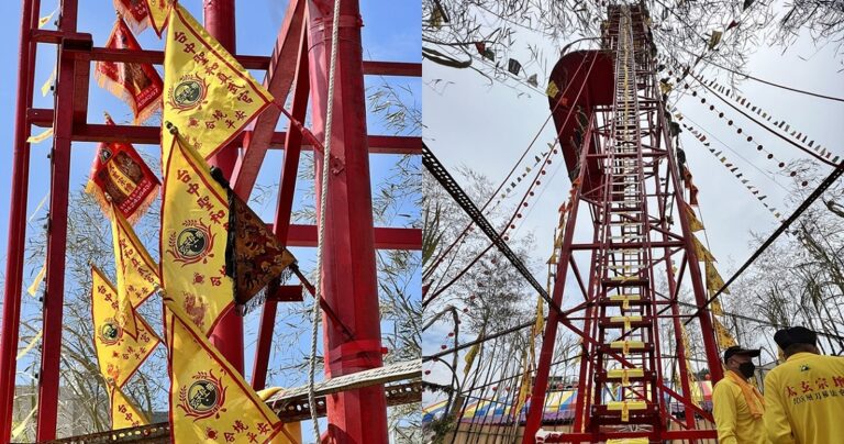 今天同樣開放民眾鑽刀梯,還多了同樣幫助消災解厄的七星火,也有法師在現場會民眾祈福。