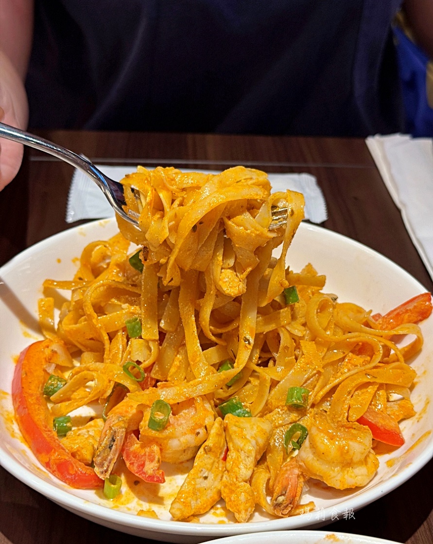 寬麵條口感厚實有嚼勁,搭配鮮嫩雞肉與彈牙鮮蝦,紅椒與紐奧良香料點綴其中,微微辛香帶出奶油醬的濃郁香氣。最後撒上的帕米森起司與青蔥,每一口都能吃到不同的香氣層次,幸福感十足。