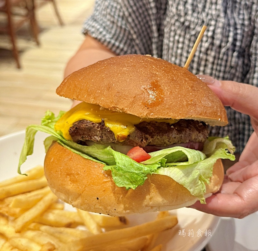 一大口咬下厚實漢堡肉排多汁又帶點嚼感,搭著清爽的生菜、酸香的番茄與微辣的紫洋蔥,口感層次鮮明,嚼起來好過癮。