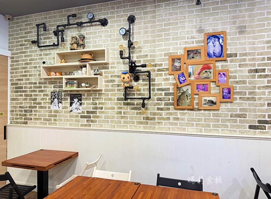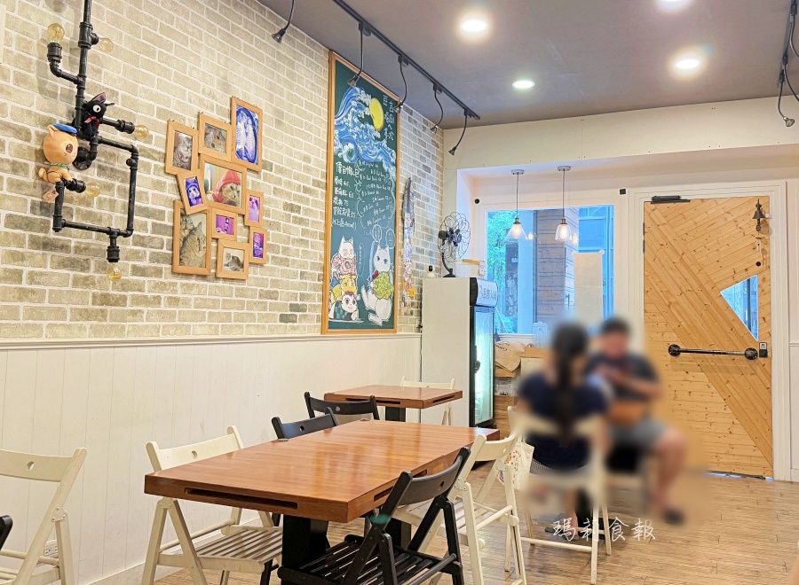 豆吉小舖空間不大,但坐起來不會感到擁擠,店裡擺放了許多可愛的貓咪公仔和鬼滅公仔,氛圍溫馨療癒,黑板上的小字也充滿幽默感。採半自助式,需要自己拿水和餐具。