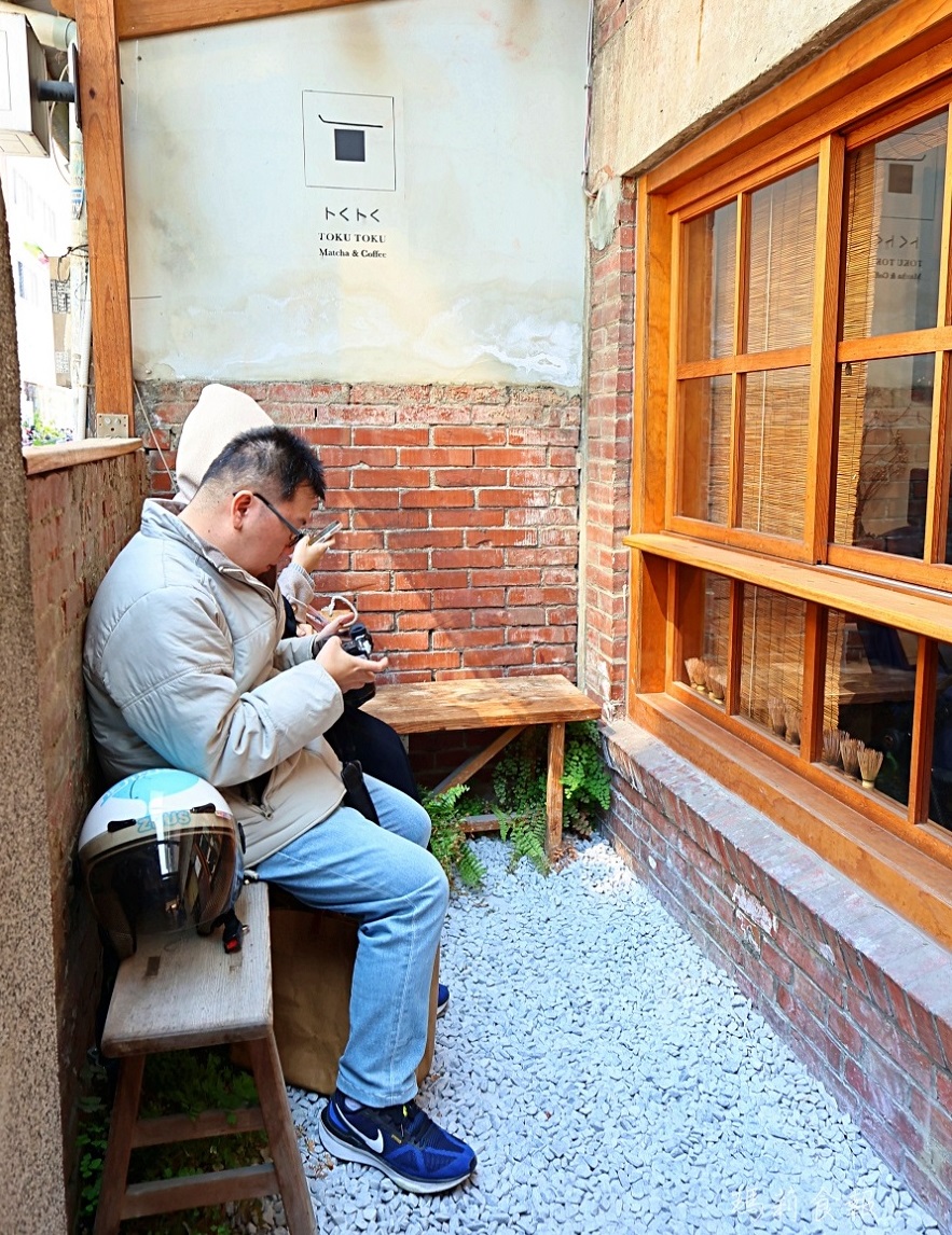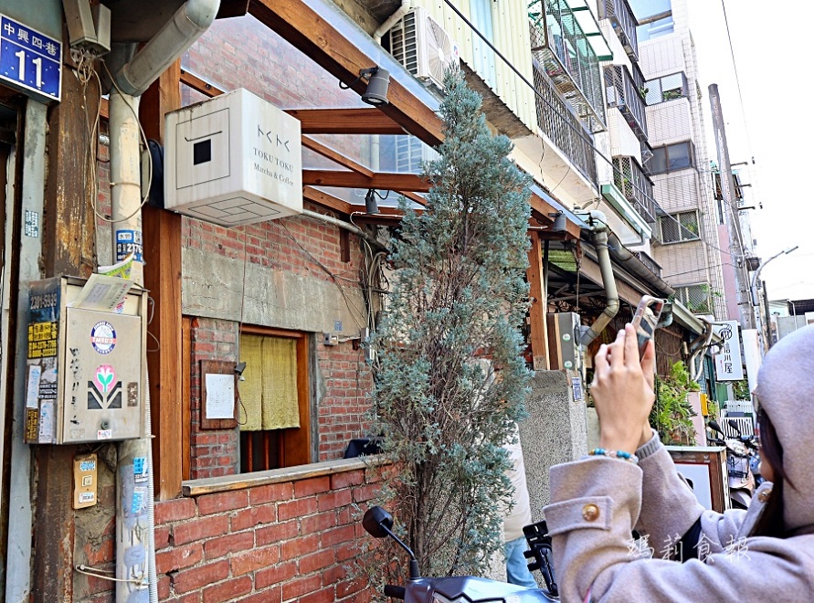 TokuToku-Matcha & Coffee 位於台中市西區中興四巷13號,鄰近勤美綠園道,巷弄裡的招牌很小,很容易錯過,認紅磚牆與木門會比較好找。