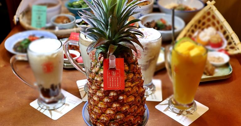 餐點有鍋類、麵食等主餐,也有古早味的台菜(手路菜)系列套餐,小菜、茶點、甜湯品和素食餐點等,選擇豐富多元;當然各種手搖飲料、茶品、果汁也沒少;看到琳瑯滿目的餐點突然選擇障礙,那就依照餐點前的鳳梨圖示點餐,享用本店的招牌品項吧!