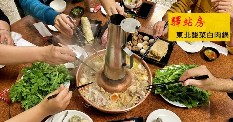辦公室長官無數次推薦的驛站房東北酸白菜火鍋,我們帶著應付的心態來吃過一次後,就接二連三地來回訪了!合菜(共鍋)式的驛站房東北酸菜白肉鍋,天然發酵的酸白菜湯頭跟鍋底的五花肉片品質都很不錯,依人數給量的套餐份量不少,一群人來吃得很盡興,兩個人來也能點小鍋的酸菜白肉鍋,再單點幾樣火鍋料、蔬菜、北方麵食或韭菜、高麗菜水餃,也能吃得很開心!(無服務費,有停車場)